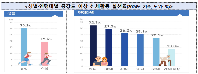 - 한국 성인 중강도 이상 신체활동 실천율 26.6% (2024년)