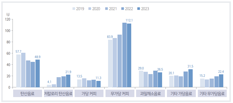 - 무가당 커피 ↑ + 가당 탄산음료 여전히 ↑
